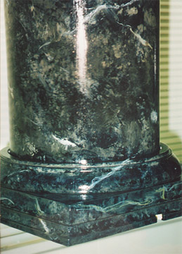 Faux black marble applied to columns and pilasters of polyurethane plastic.